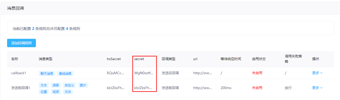 | 启用状态 | 是 | 是否启用回调规则: