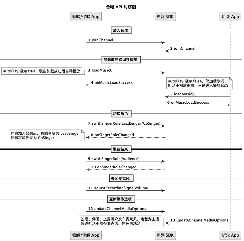 下图展示合唱的 API 调用时序图: