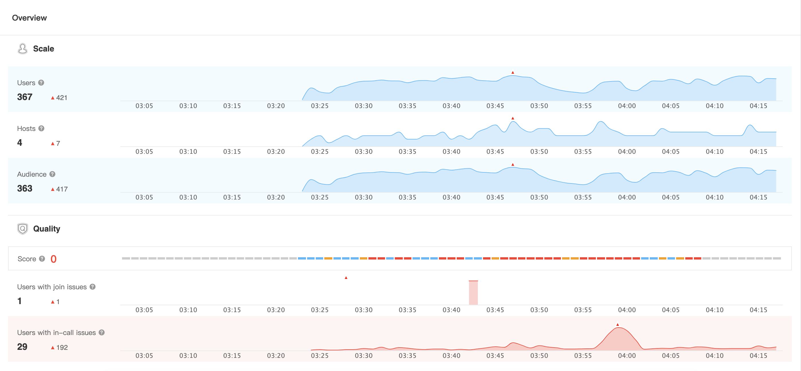 | Users with join issues | The number of users having issues when joining the channel, including users who fail to join and users who experience a delay in joining the channel. |