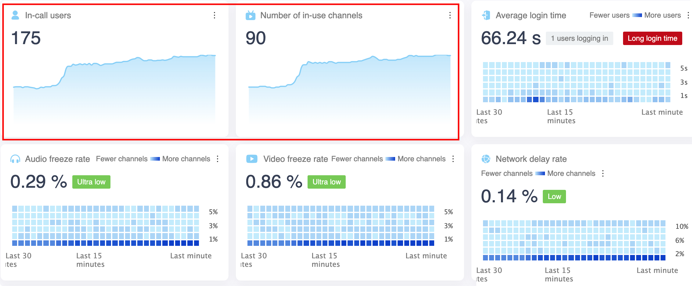 | In-call users | The total number of users across all in-use channels. A user joining multiple channels is counted multiple times. |