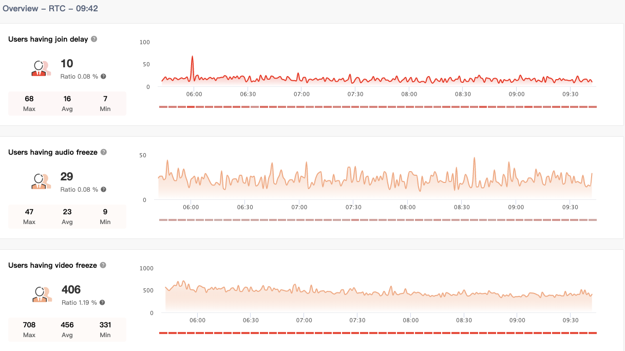 | Users experiencing join delay | Users who successfully join a channel but experience a delay. The ratio is the number of users experiencing channel-join delay against the total number of users who apply to join a channel. |