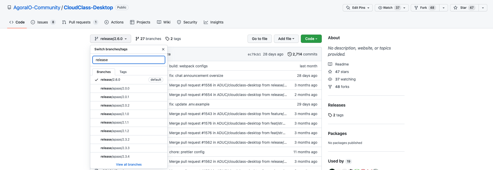 The source code of Flexible Classroom (Web) is in the CloudClass-Desktop repository. To download the source code to your local device, refer to the following steps: